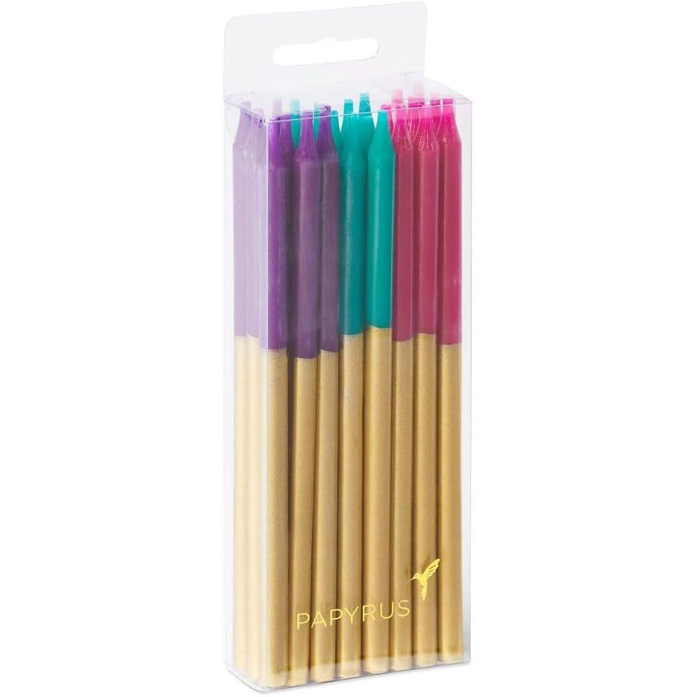 Papyrus Birthday Candles, Stripe & Polka Dot (24-Count)(Gold Dip Purple Aqua & Fuchsia)