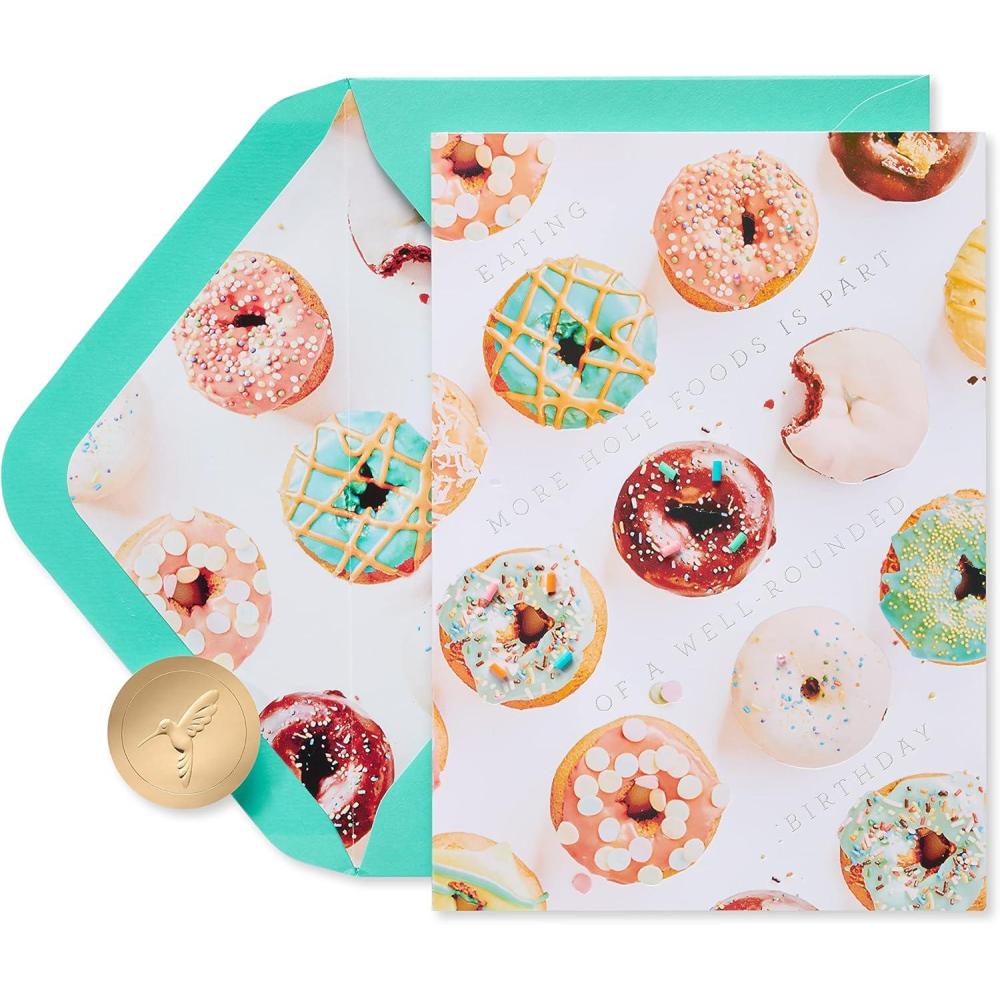 Make them feel 10 feet tall on their birthday with this premium card from Papyrus! Perfect for family, friends, coworkers, or anyone who just gets sweeter with age. Featuring a towering slice of scrumptious cake, this card is deliciously decorated with foil, micro-beads, and layered paper. Cake topper is a birthday candle tipped with a gem! The playful inside message serves up extra fun and happiness for that special someone in your life. Premium yellow-gold envelope with sprinkle-patterned lining and unique Papyrus gold seal included. Extra postage required.