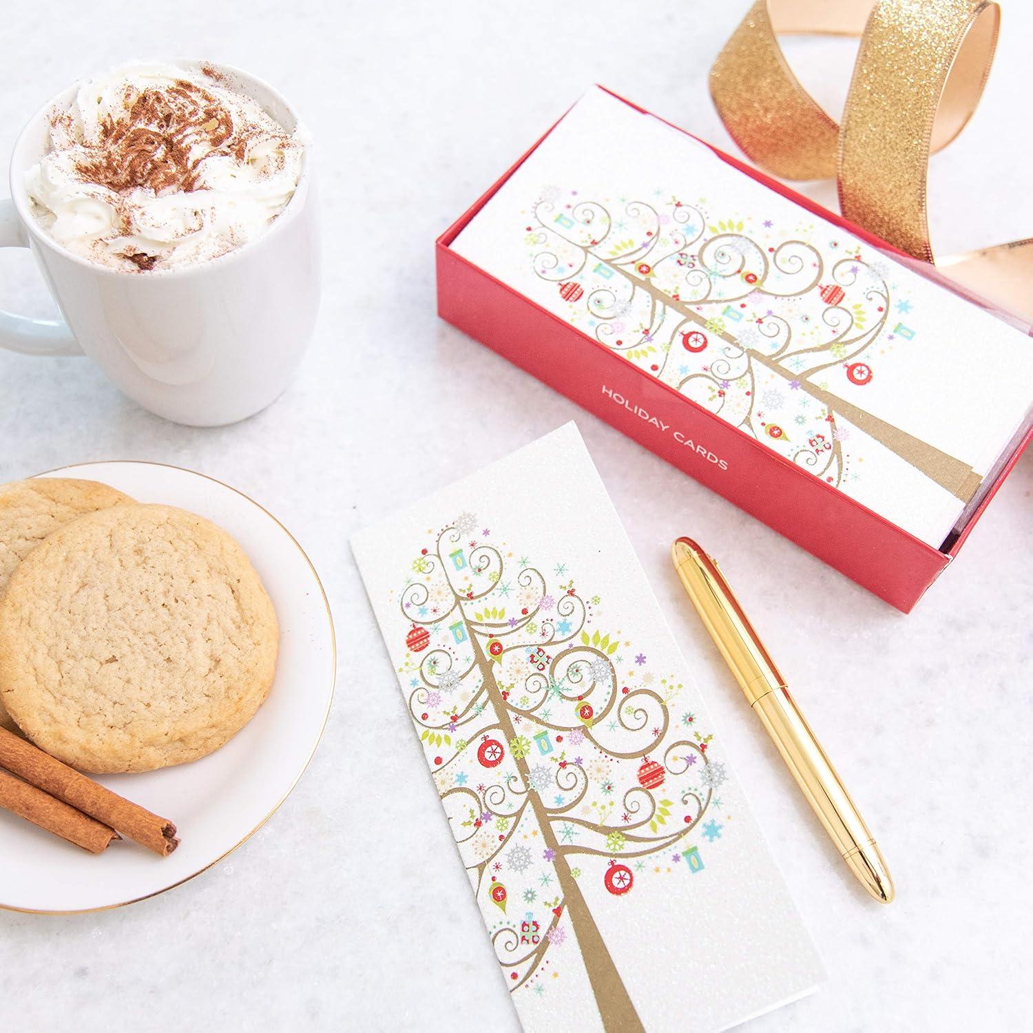 With the signature style of Papyrus, this on-trend boxed cards design features a whimsical tree and a unique, elongated size with special embellishments like shimmering foil and sparkling glitter. Joyful holiday and new year wishes make them perfect for sharing among family, friends, co-workers, clients, neighbors and all the important people in your life.