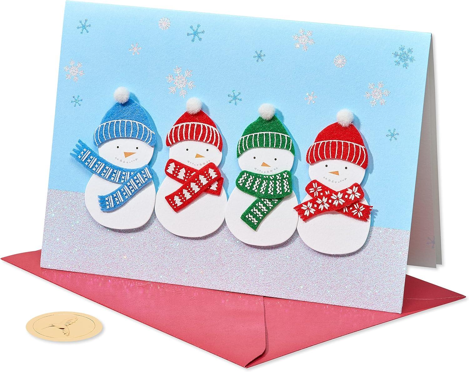 These festive Christmas cards by Papyrus are glitter-free and feature playful snowmen with quality paper attachments, felt and pom-poms