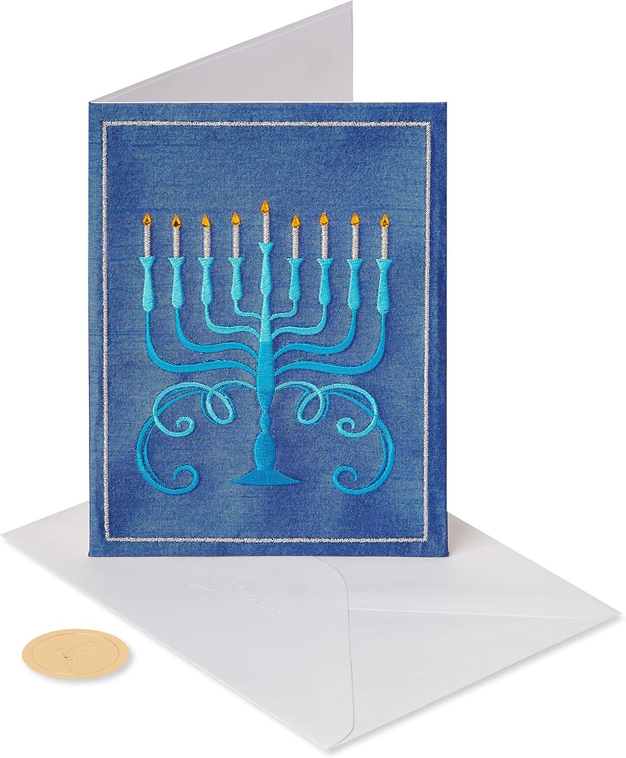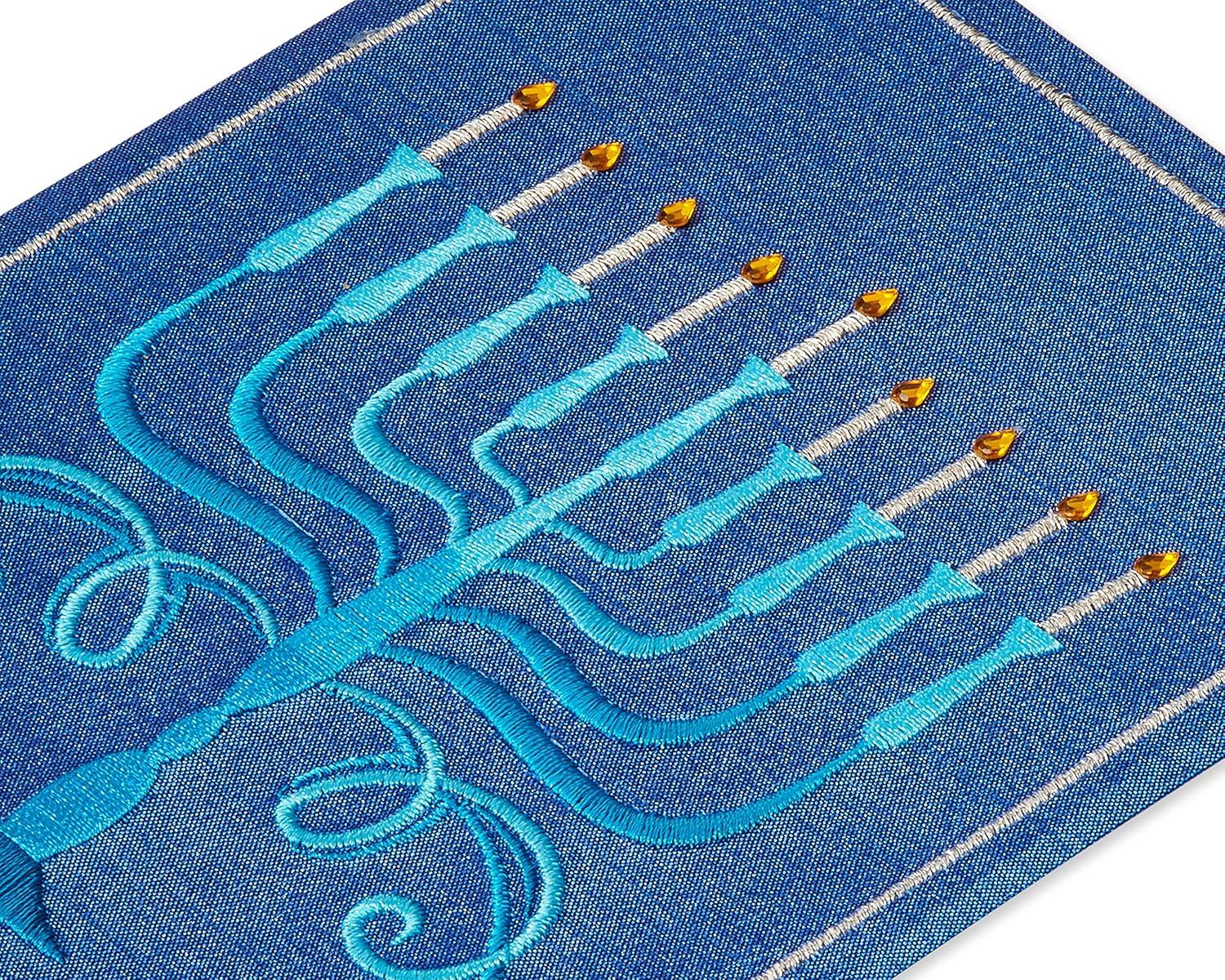Papyrus Hanukkah card features a premium design with stitching, fabric and gem attachments