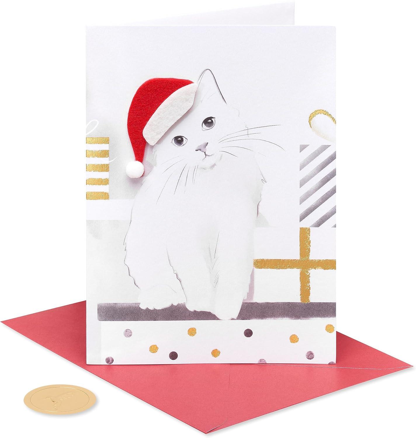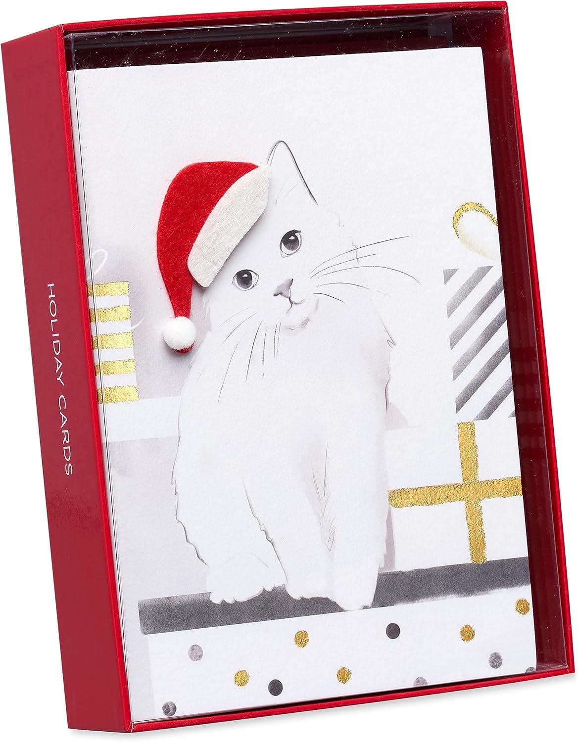 Papyrus Christmas Cards Boxed with Envelopes, Celebrate The Season (8-Count)(Santa Hat Kitty)