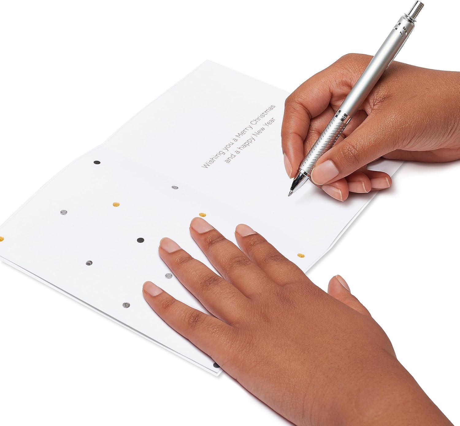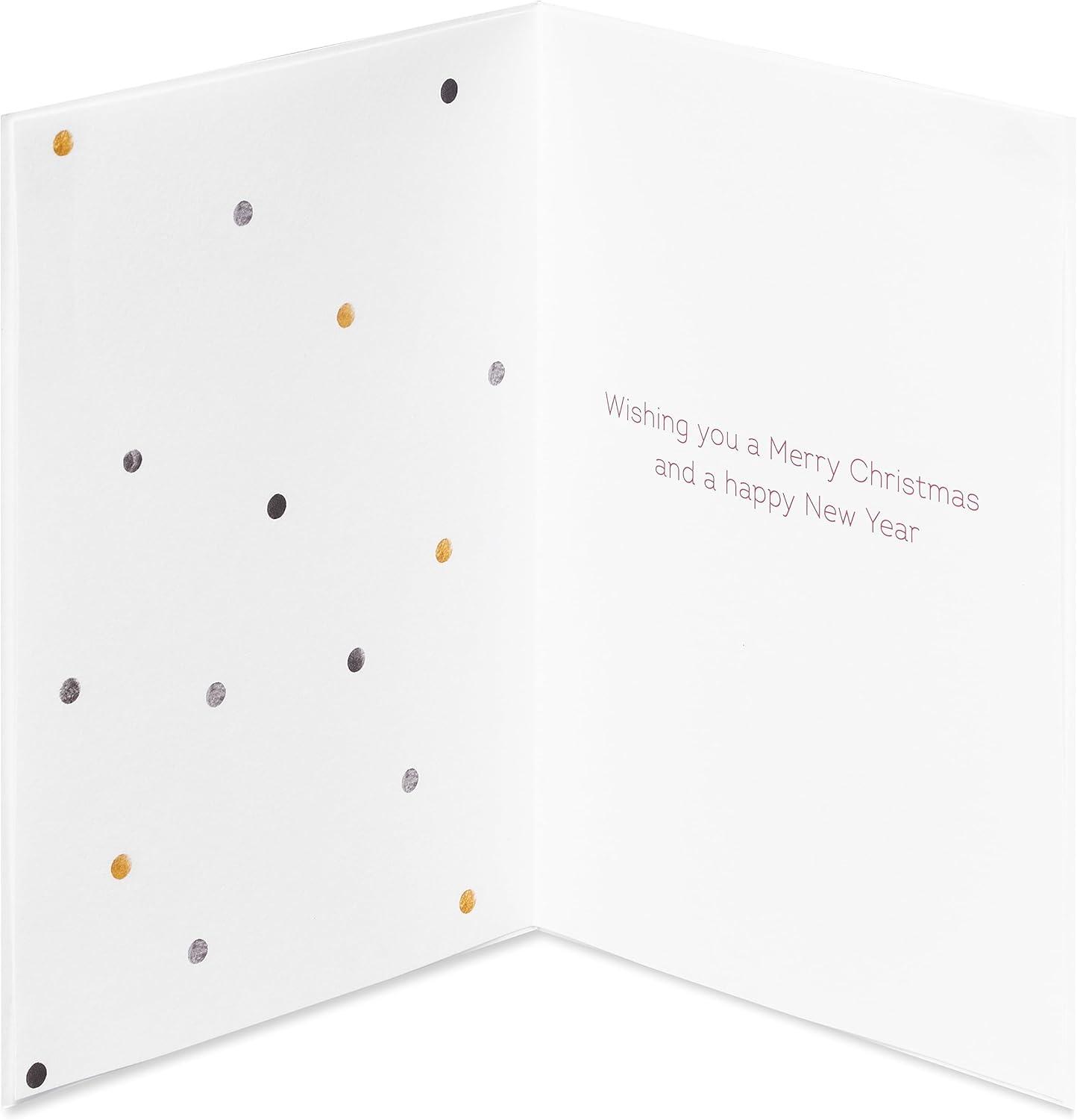 Light up the holidays and the faces of those who mean most to you with this boxed set of premium cards from Papyrus! The set of eight cards features a string of colorful Christmas-tree lights with “Merry & Bright” in red lettering on a white background. Foil accents, embossing, and beads all add to the cheerful design. The celebratory message is sure to add lots of happiness to everyone’s holiday. Includes eight premium lined envelopes and gold seals.
