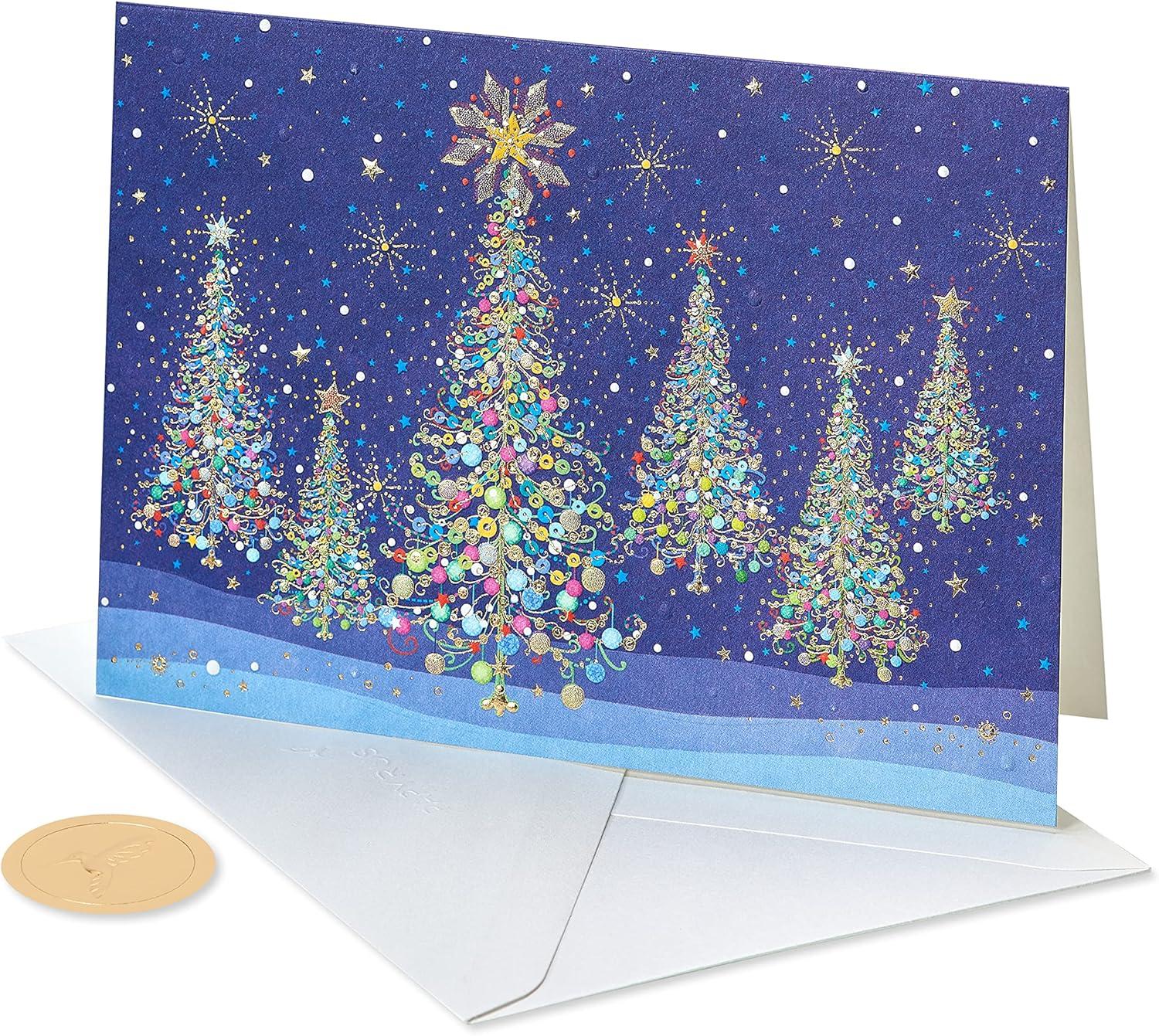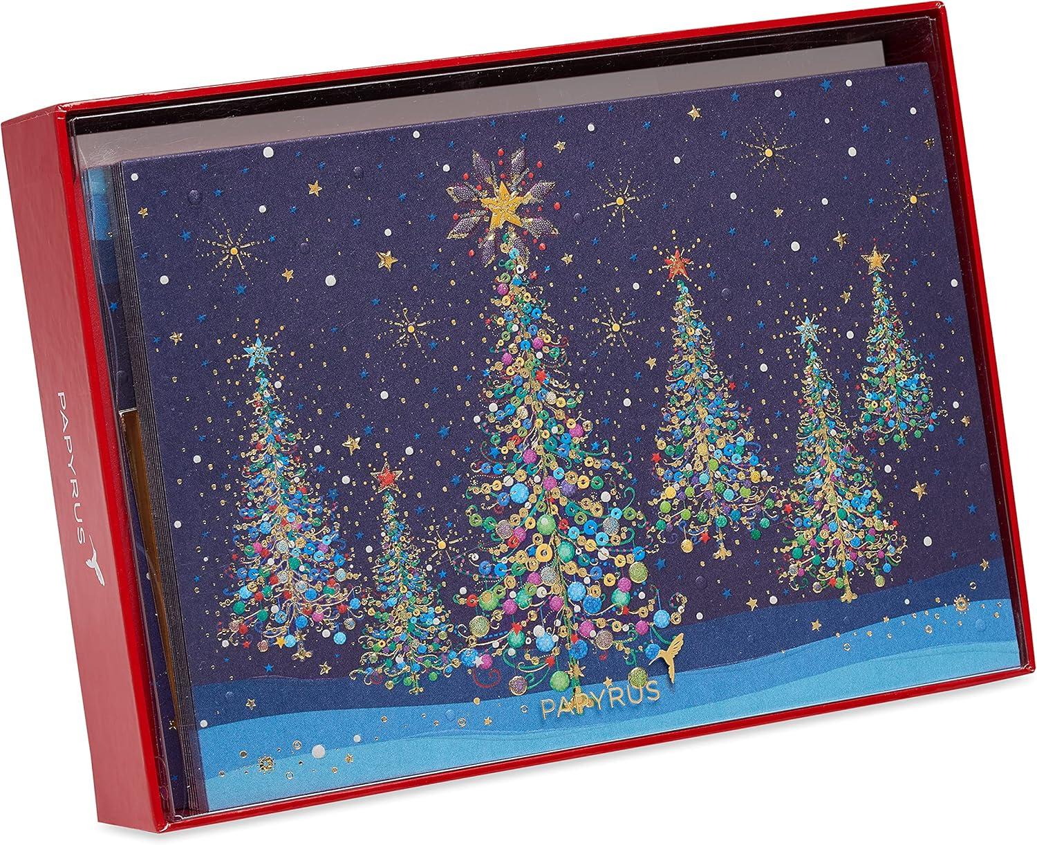Papyrus Christmas Cards Boxed with Envelopes, Warmest Wishes, Vintage Floral (14-Count)(Magical Row of Holiday Christmas Trees)