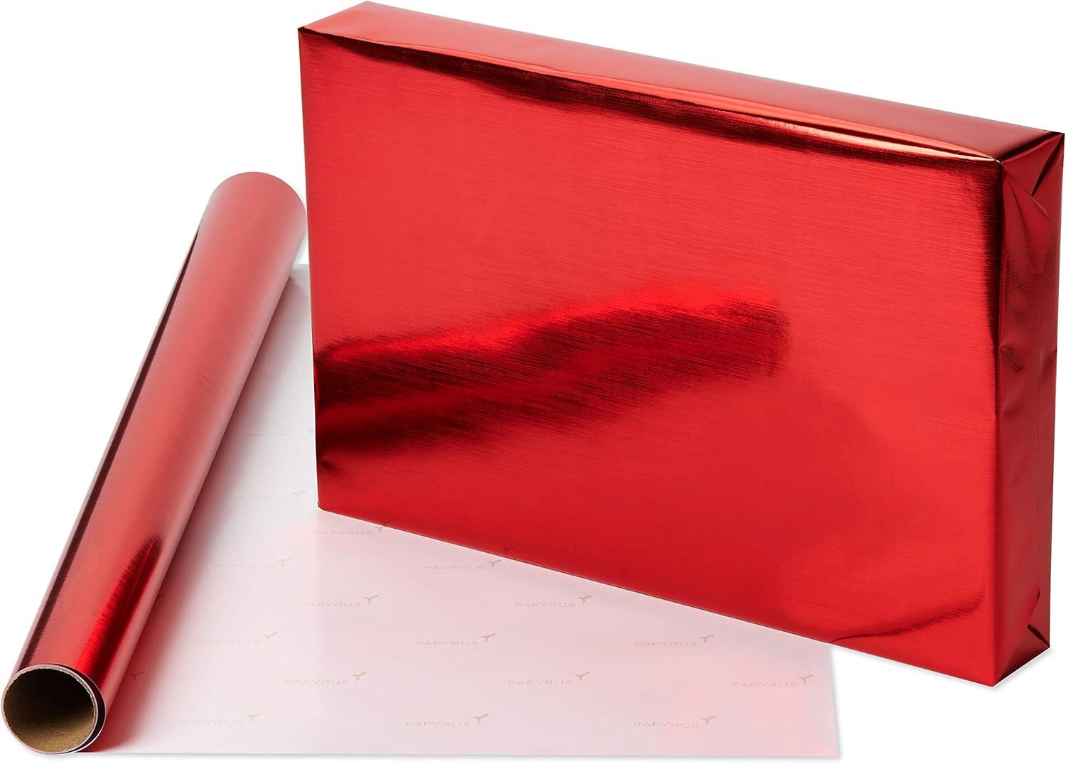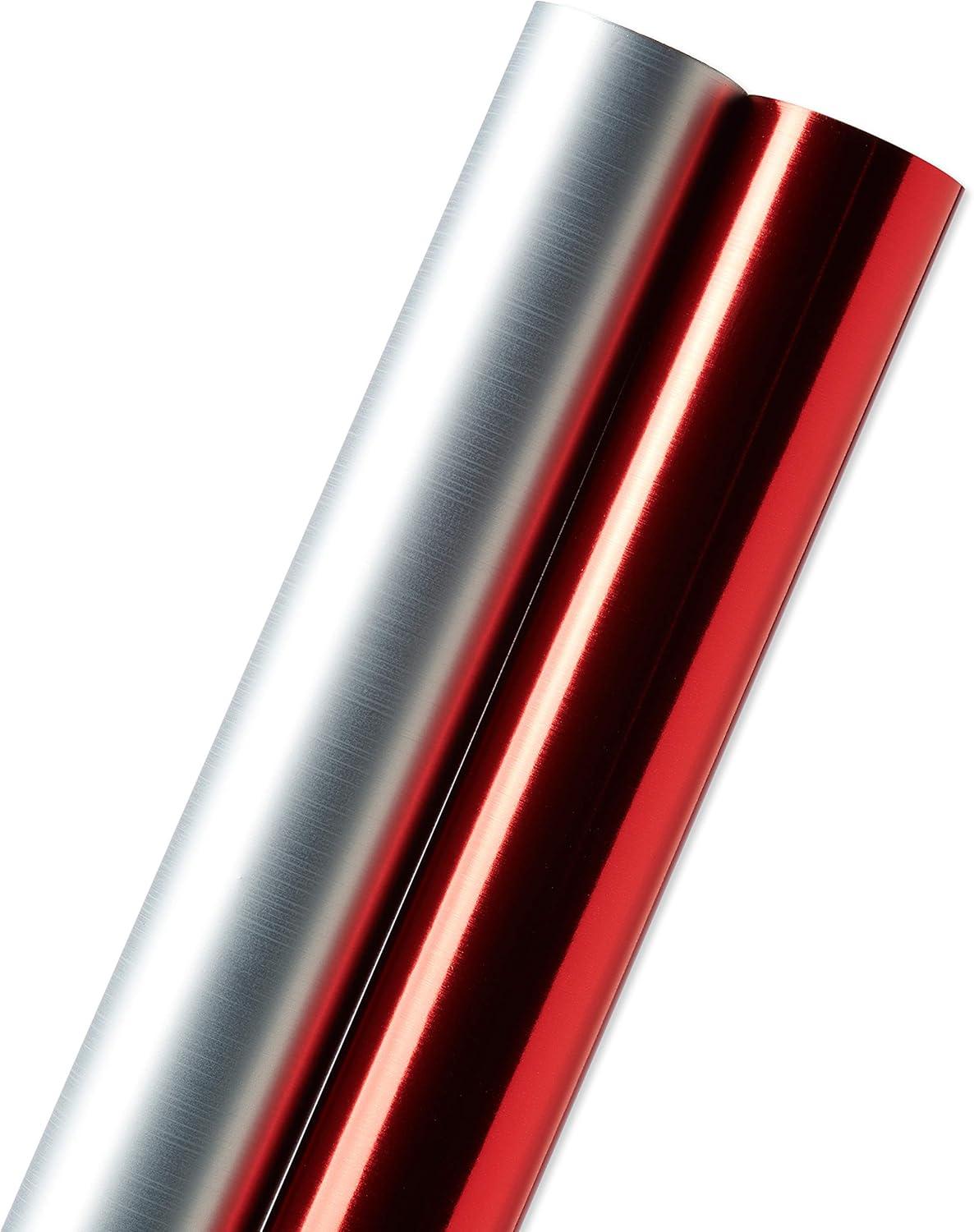 Papyrus Christmas Wrapping Paper Rolls, Greenery, Lettering and Polka Dots (3 Rolls, 22.5 sq. ft.)(Red and Silver)