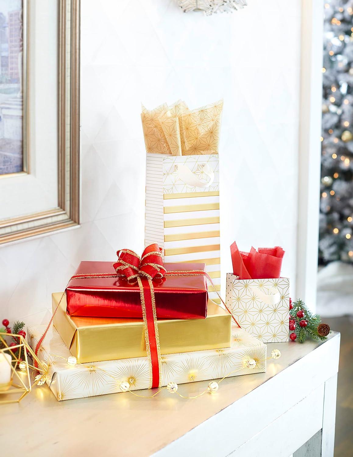 If you’re looking for merry and bright Christmas gift wrap, you’ll find it with this Happy Holly Days collection from Papyrus! This wrapping paper bundle comes in a set of three beautiful rolls, two foil and one holographic, including holly silhouetted in gold against a red background, silver with a festive word pattern in gold script, and red with gold accents. Your gifts will look great in this premium Papyrus paper! Whether you’re wrapping something large, small, or in between, your holiday spirit will be displayed in a big way when you use gift wrap from Papyrus!