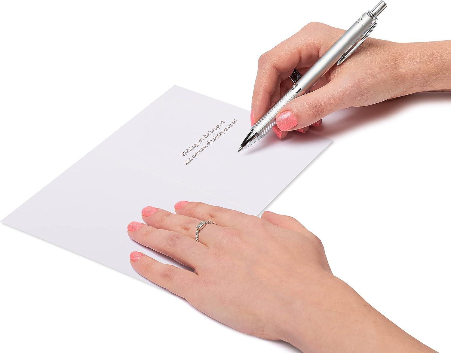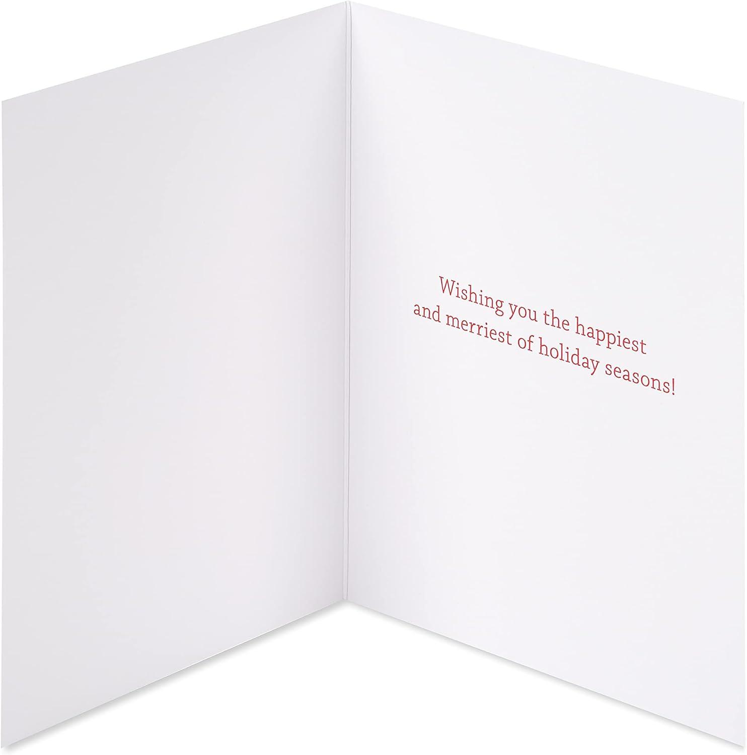 Papyrus boxed Christmas greeting card set includes 20 cards, 20 red envelopes, and 20 gold seals. Boxed in protective plastic lid. Cards measure 3.75 in. x 4.75 in. Standard postage required.