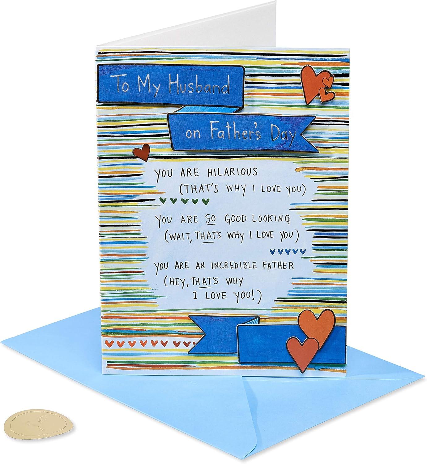 This premium Father's Day card for Husband by Papyrus features an intricate design with acrylic, shimmering foil and charm attachments