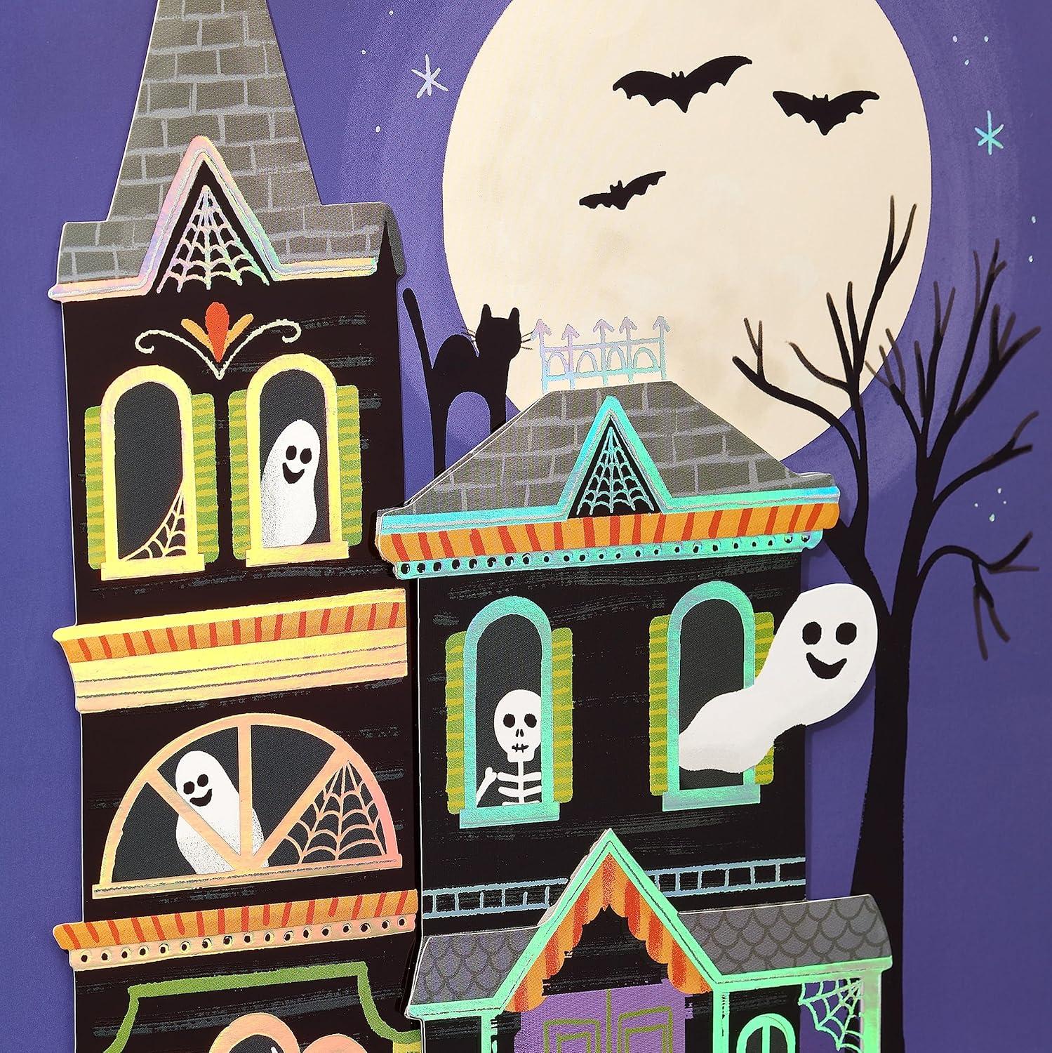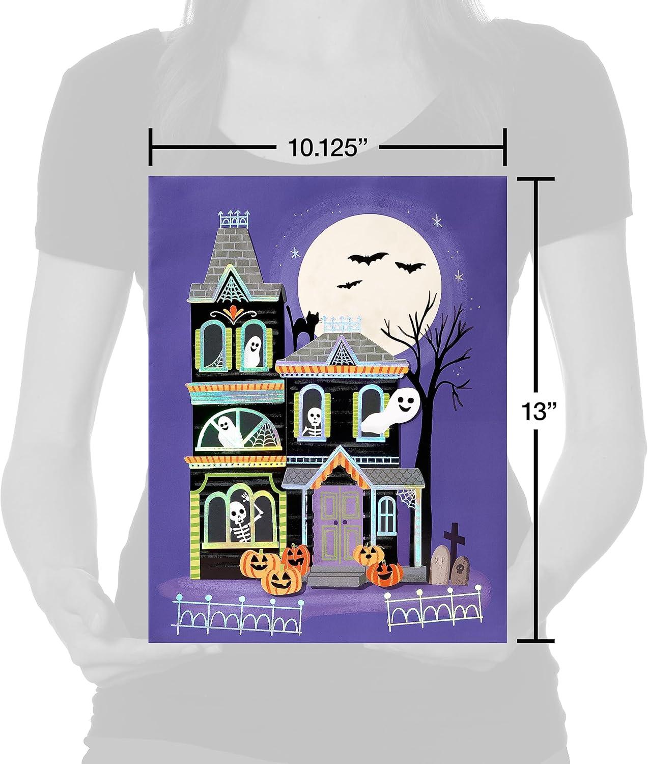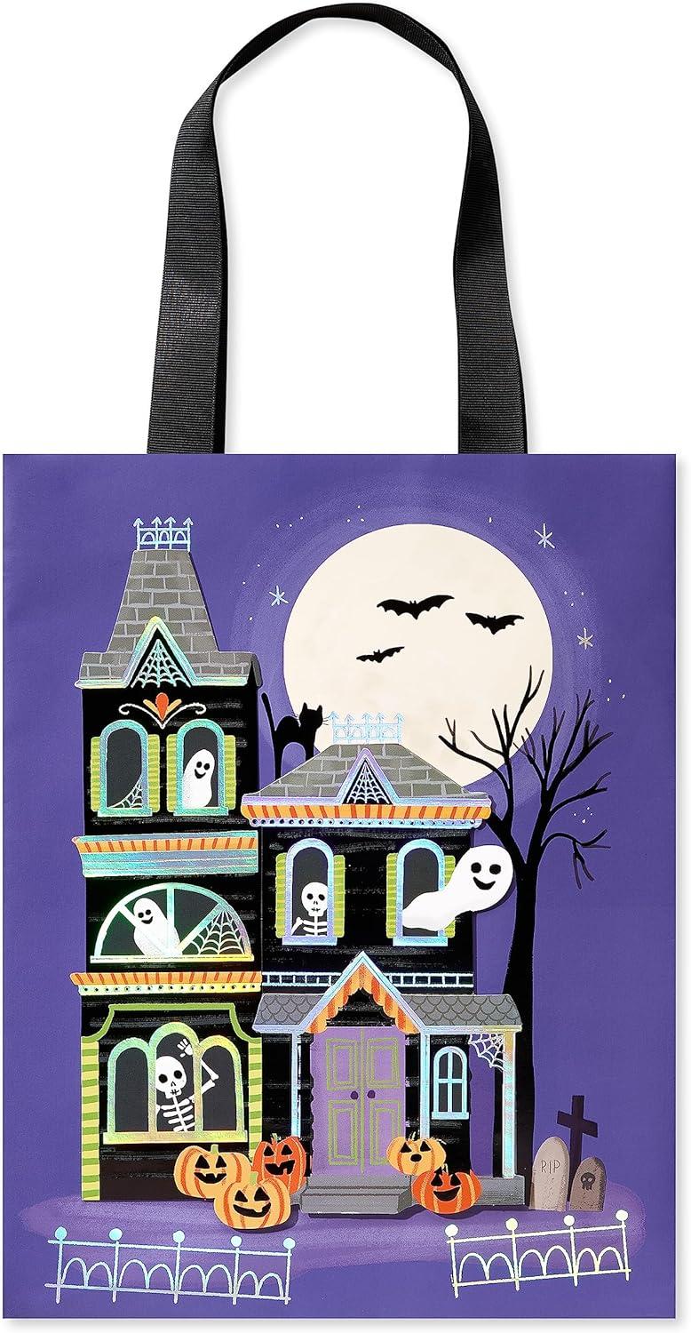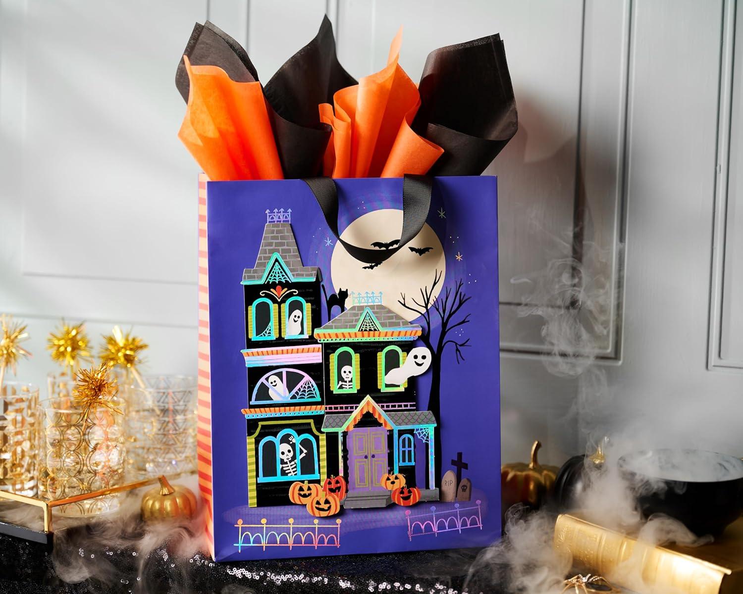 Papyrus Ghost 7″ Medium Bag, White, Orange, Black with Metallic Foil, Embossing and Satin Ribbon Handles – Perfect for Hard to Wrap Gifts, Unique Party Displays and More(Haunted House- Large Bag)