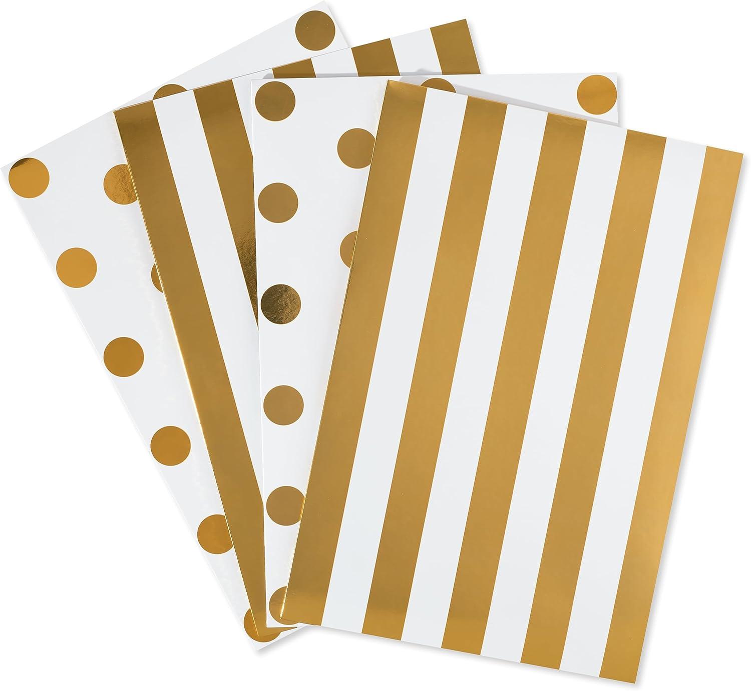 Share the gift of happiness with this premium gift box set exclusively from Papyrus. This set includes four gift boxes with two unique designs. Gift boxes with lids each measure 14.25″ long by 9.5″ wide. One design features elegant gold and white stripes and the other includes gold polka dots on a white background. Perfect for any occasion, this gorgeous Papyrus box set is sure to make anyone’s day a whole lot of happier.