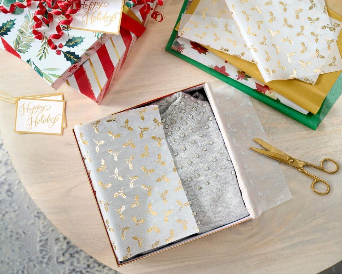 Decorate your gift giving with this beautiful gift packaging set from Papyrus. Includes all the must haves for wrapping gifts this holiday season!