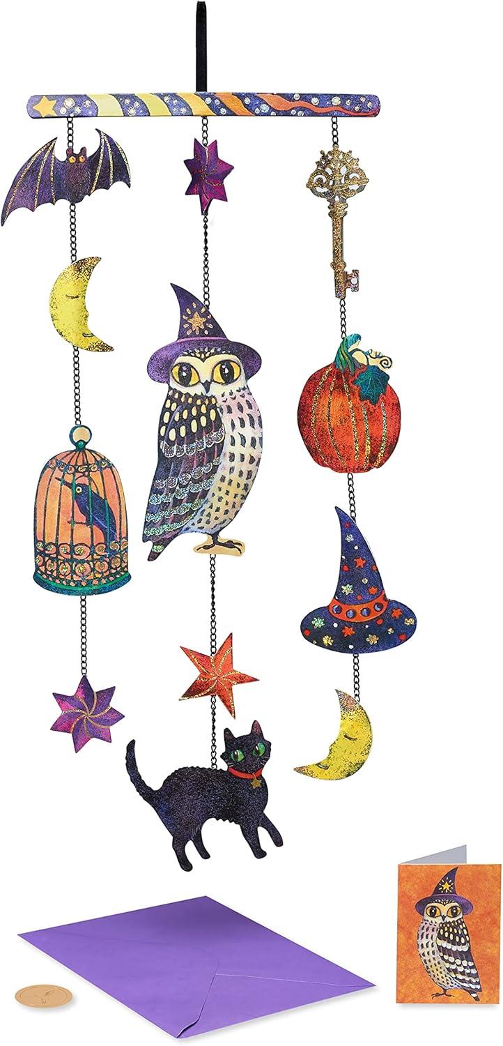 The Halloween fun just got even better! This totally “booo-nique” card from Papyrus is a delight for any fan of season! Featuring a large felt pumpkin filled to the brim with traditional Halloween treats (and a few tricks!), the card can be quickly and easily turned into a cool mobile to hang using the attached ribbon! Bright, festive, and fun for kids of all ages, this premium card is guaranteed to get them in the Halloween spirit! Comes with matching green envelope with fun liner pattern. Extra postage may be required.