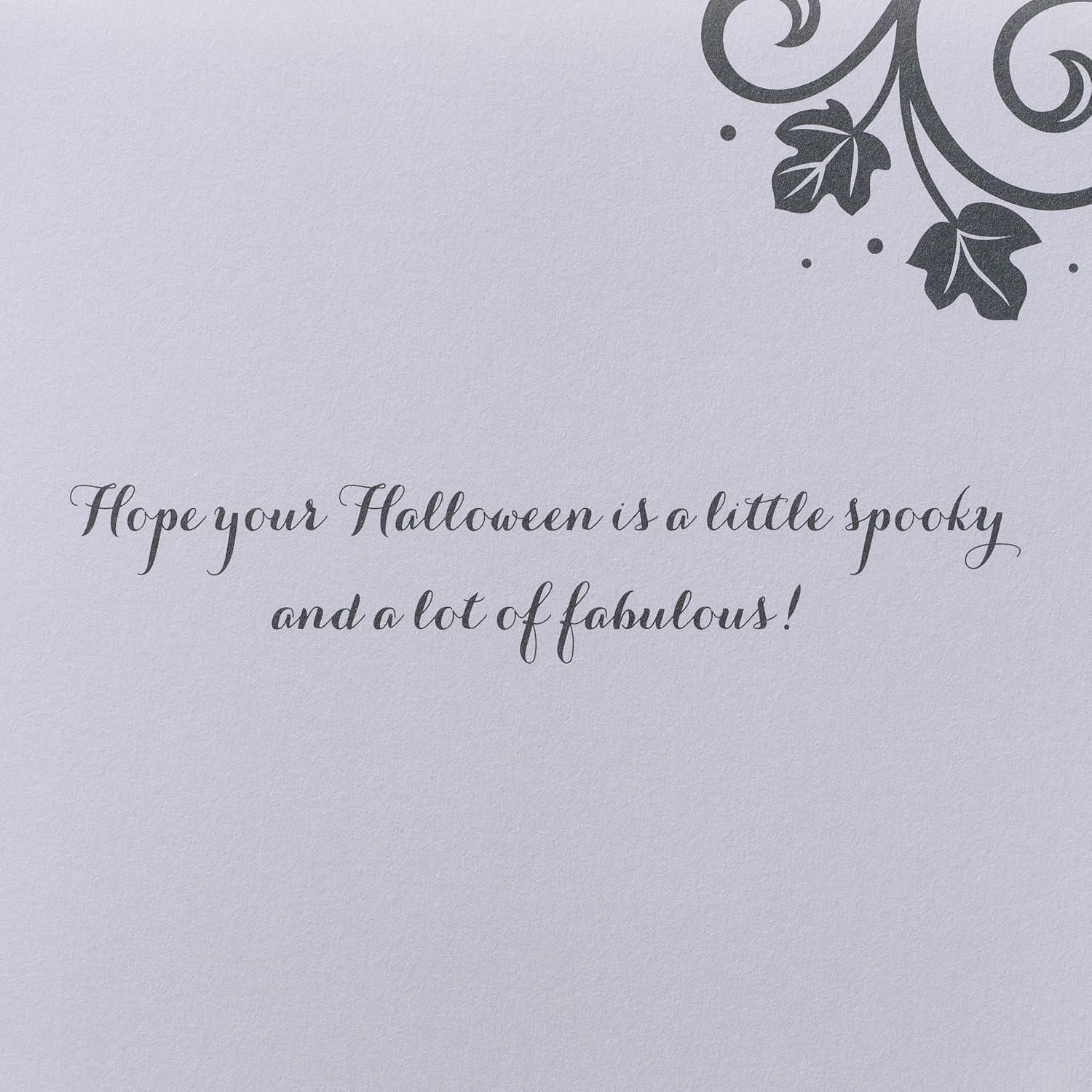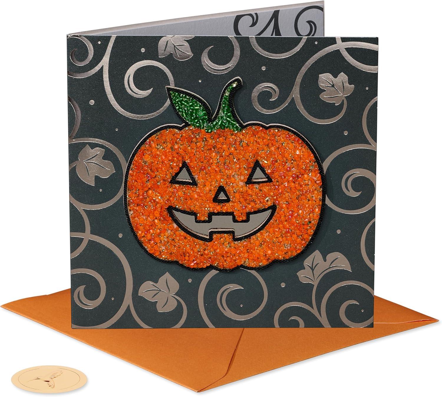 Send someone a gourd-eous Halloween wish with this premium card from Papyrus. Featuring an orange pumpkin with sequins and copper foil along with script lettering and rounded edges, it’s a perfect treat for the eyes. Blank inside with room for your own message. You couldn’t make a better pick. Includes envelope and gold seal. Extra postage may be required.