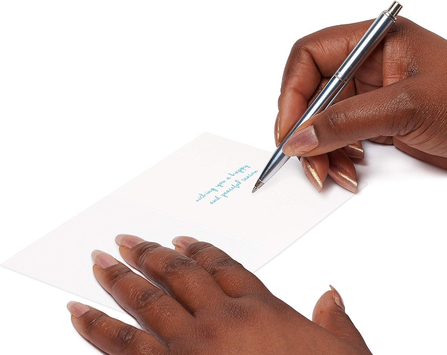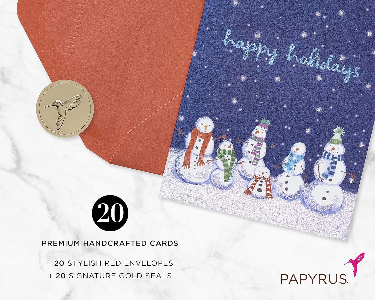 Send warm and cheery holiday wishes with this lighthearted Papyrus card featuring glitter-accented snowmen in a row. Set of 20 cards comes with coordinating envelopes, gold Papyrus hummingbird seals and a box with acetate lid. It’s perfect for sharing with a wide variety of people, from family, friends and co-workers to clients, neighbors and classmates. Crafted with high-quality paper and exquisite embellishments, Papyrus holiday cards are a joy to send and receive! Papyrus offers premium stationery, greetings cards, gift wrap, gift bags and entertaining products for everyday occasions and all holiday seasons–all with unique designs and quality embellishments