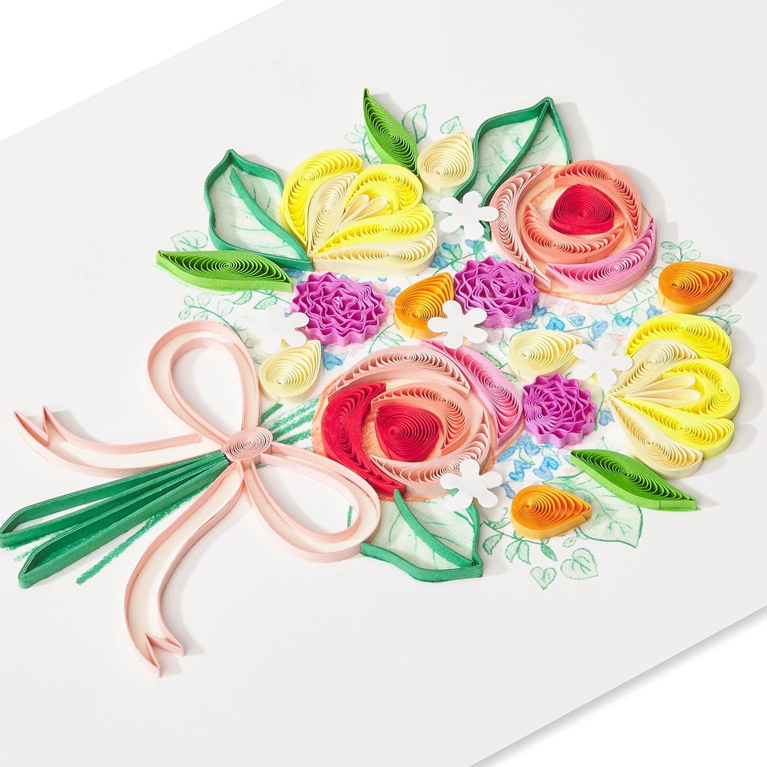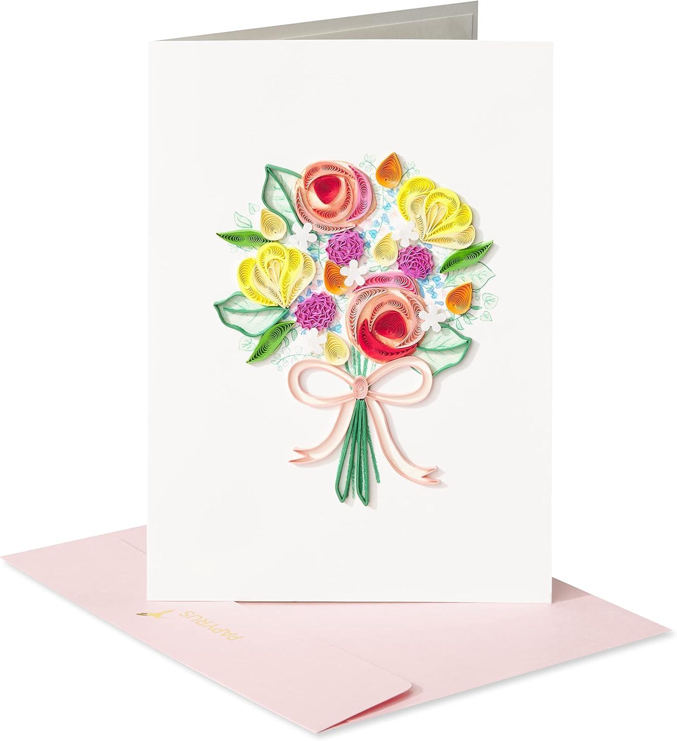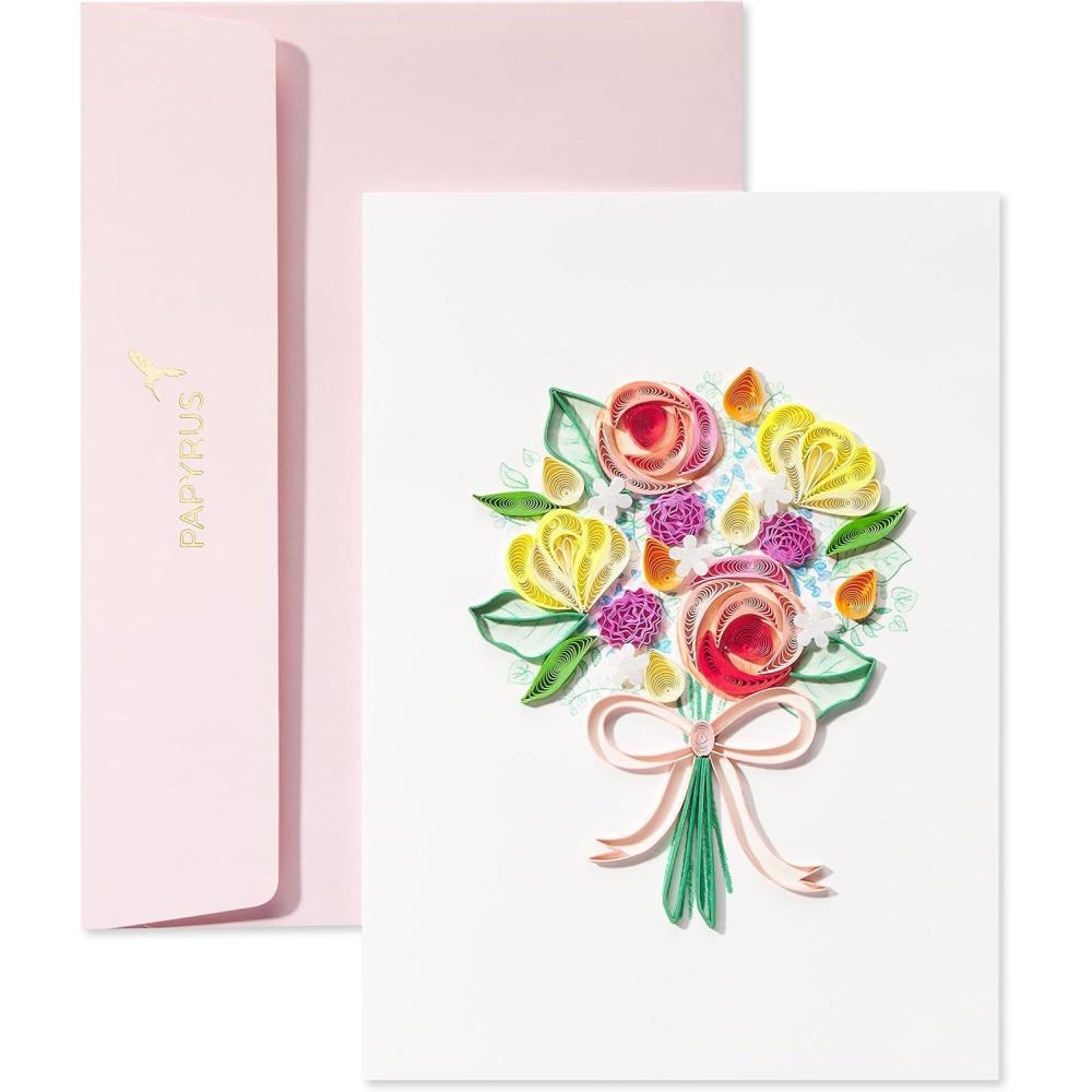This Papyrus Mother’s Day card features intricate handcrafted quilling art shaped into a beautiful bouquet.