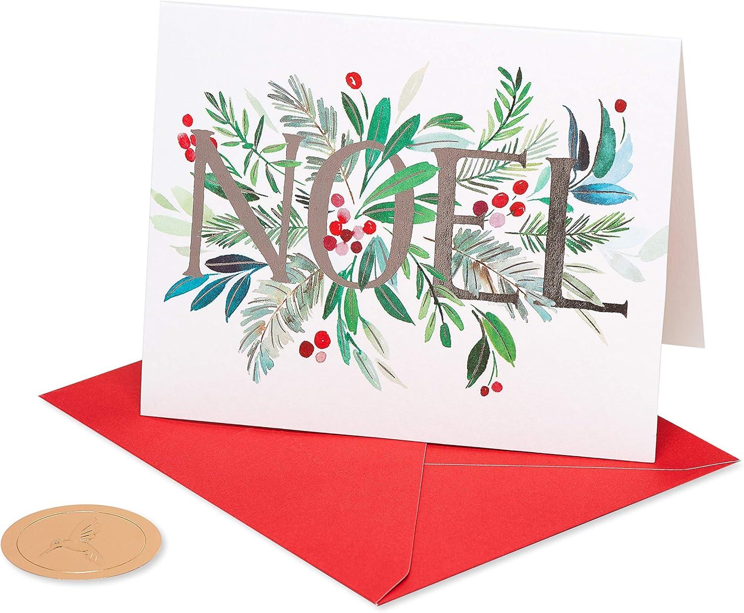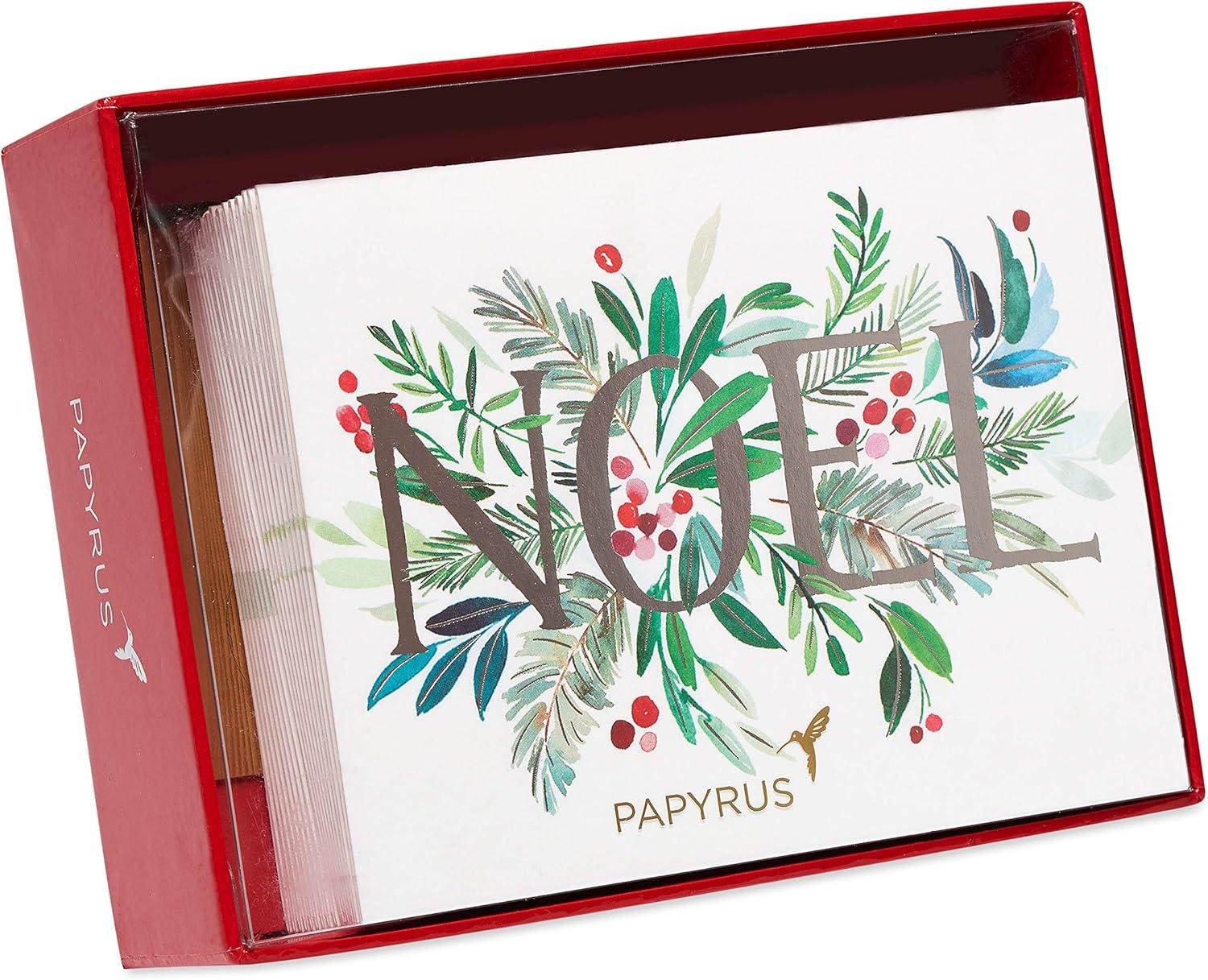 Papyrus Petite Christmas Cards Boxed with Envelopes & Signature Hummingbird Seals, Noel and Holly (20-Count)(Warm and Merry Christmas Noel)