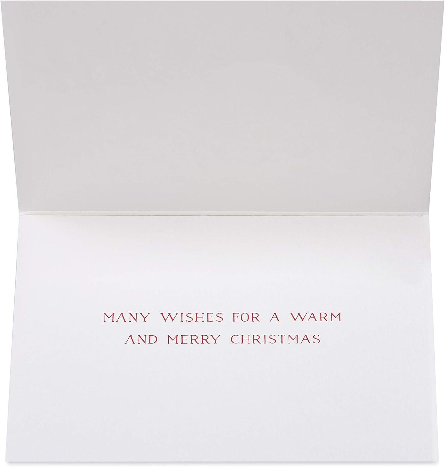 Papyrus boxed Christmas greeting card set includes 20 cards, 20 red envelopes and 20 gold seals. Boxed in protective plastic lid. Cards measure 3.75 in. x 4.75 in. Standard postage required