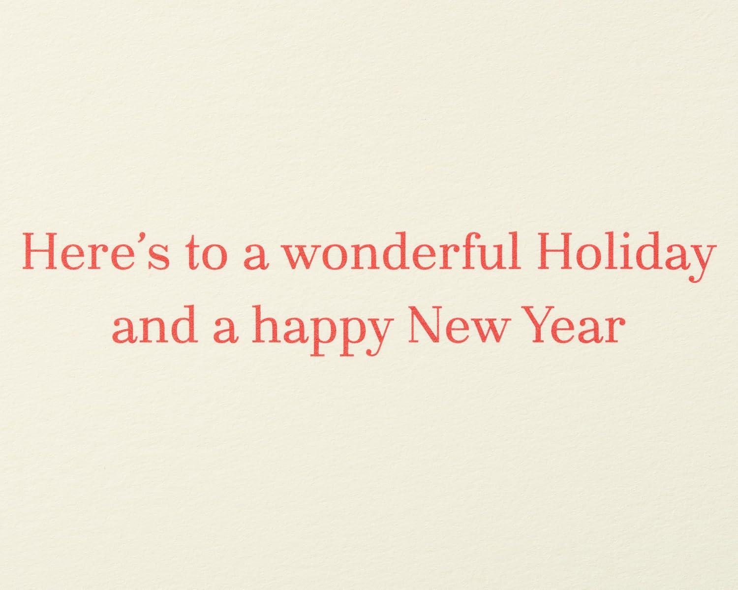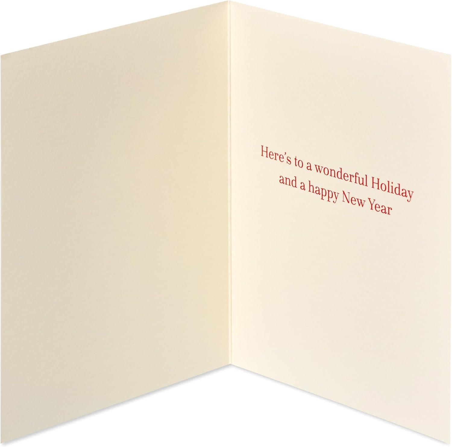 Share some seasonal magic with this fun boxed set of 20 Christmas cards, only from Papyrus! In this cheerful holiday design, Santa can be seen in the forest, carrying away one newly decorated tree. The trees are composed of three different color greens, creating a simple yet contemporary flair that will bring a smile to anyone’s face! Perfect for sharing with a wide variety of people, from family, friends and co-workers to clients, neighbors and classmates. Crafted with high-quality paper and glitter-free, this set of Papyrus cards also includes 20 matching red envelopes and 20 gold foil seals.