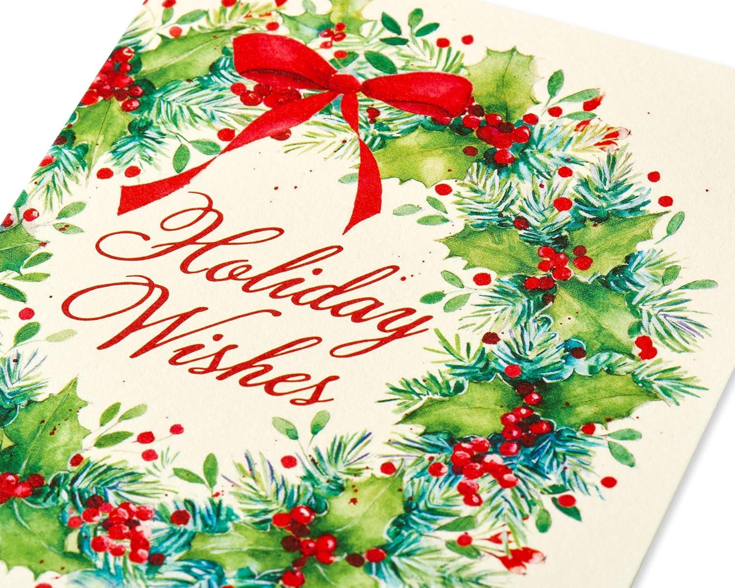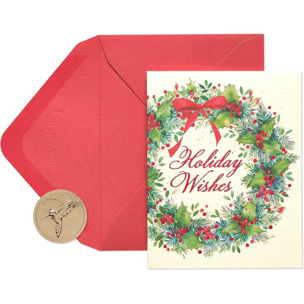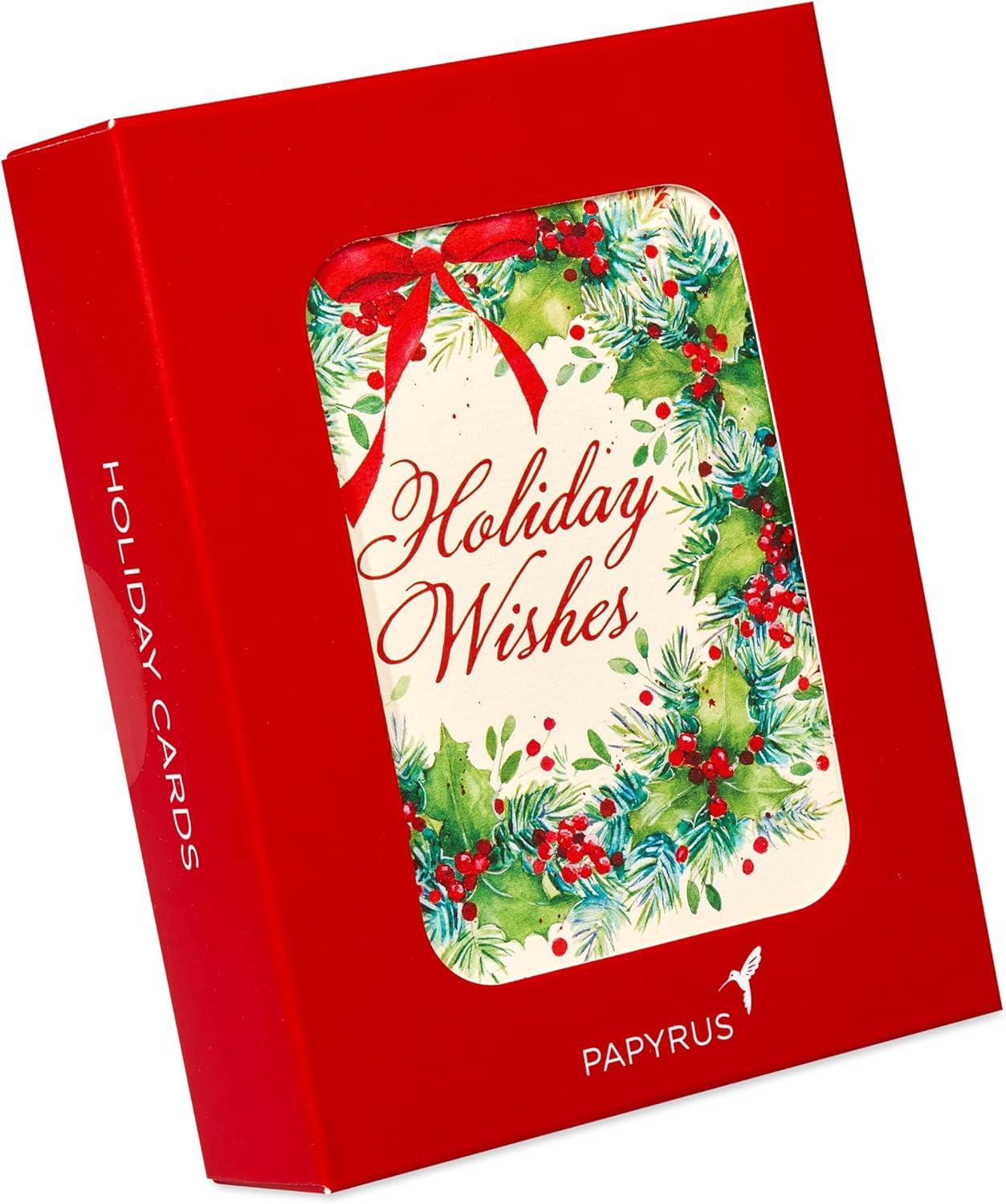 Papyrus Petite Christmas Cards Boxed with Envelopes & Signature Hummingbird Seals, Pine Trees with Santa (20-Count)(Christmas Wreath and Holiday Wishes)