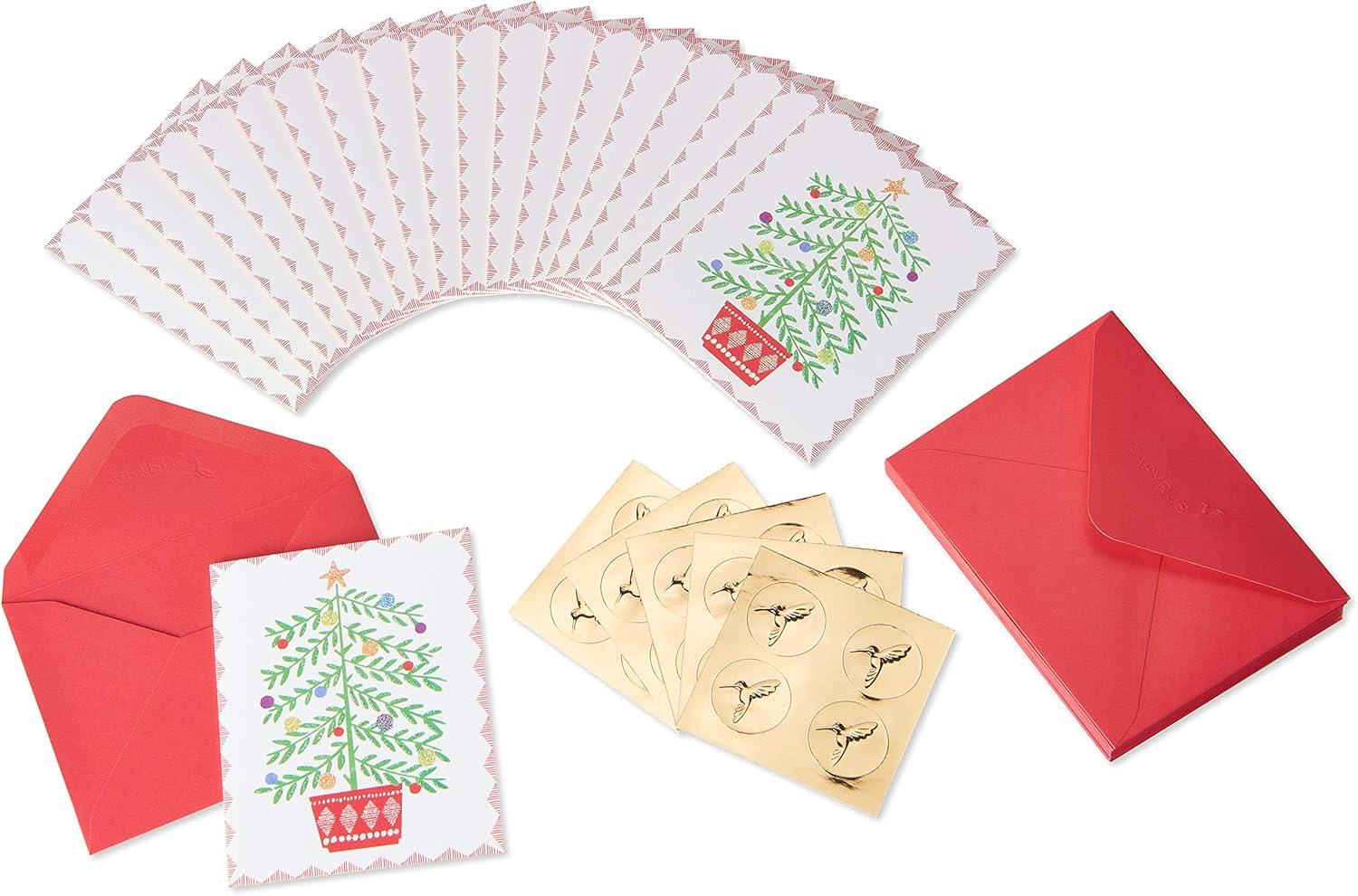 Papyrus Petite Christmas Cards Boxed with Envelopes & Signature Hummingbird Seals, Pine Trees with Santa (20-Count)(Tree In Pot 20/Pkg)