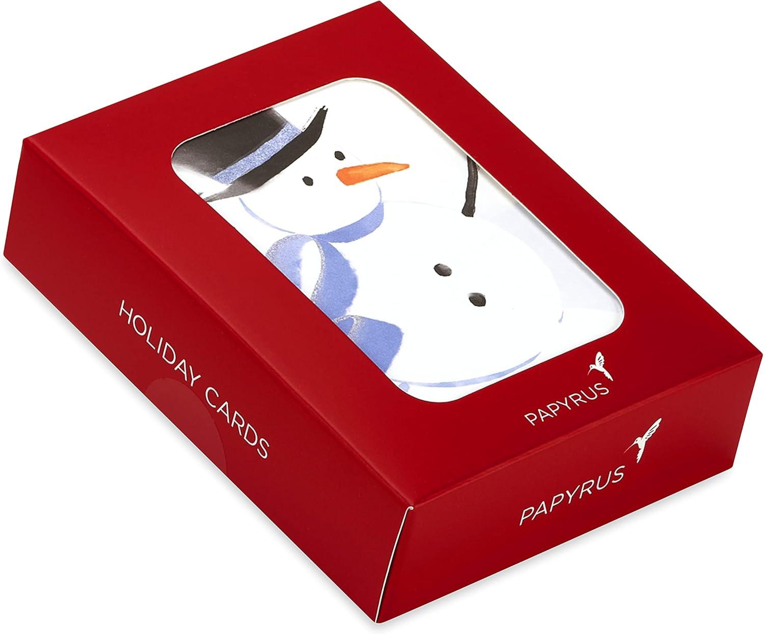 Papyrus Petite Christmas Cards Boxed with Envelopes & Signature Hummingbird Seals, Pine Trees with Santa (20-Count)(Wonderful Holiday Season Snowman)