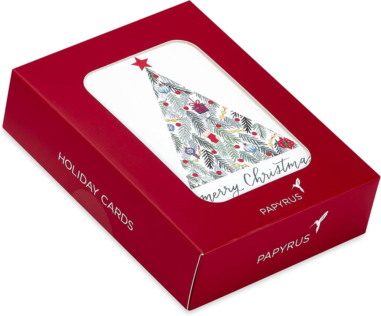 Papyrus Petite Holiday Cards Boxed with Envelopes & Signature Hummingbird Seals, Modern Christmas Tree (20-Count)(Merry Christmas Tree)