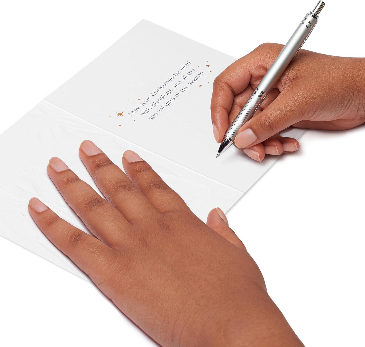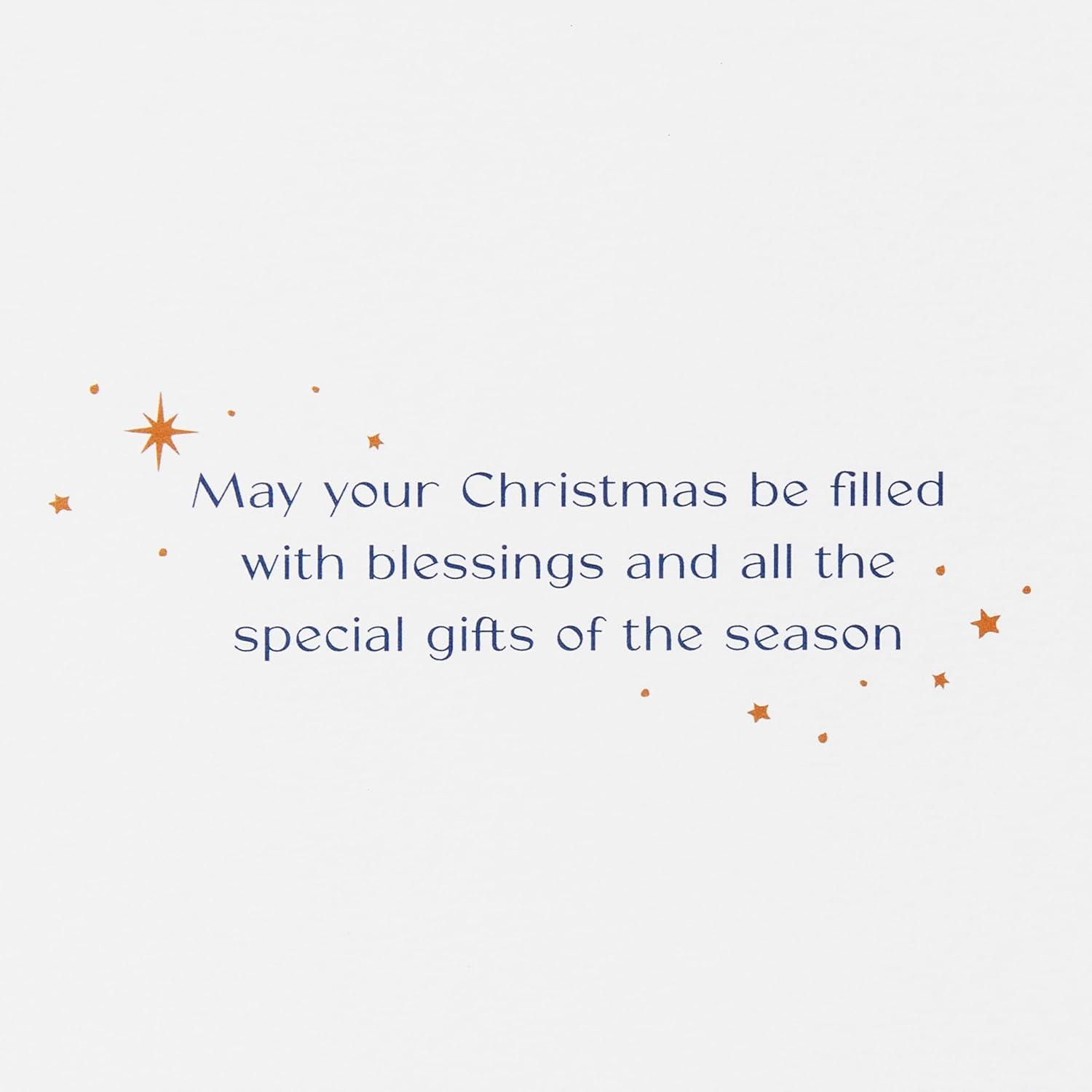 Tis the season to spread some beautiful blessings with this box set of 12 premium religious cards from Papyrus! The colorful design featuring the three wisemen bringing gifts to baby Jesus is enhanced with foil and embossing. The wish included is one filled with hope and love and it’s one that’s sure to remind everyone of the true meaning of Christmas. Includes 12 premium lined envelopes and 12 gold seals.