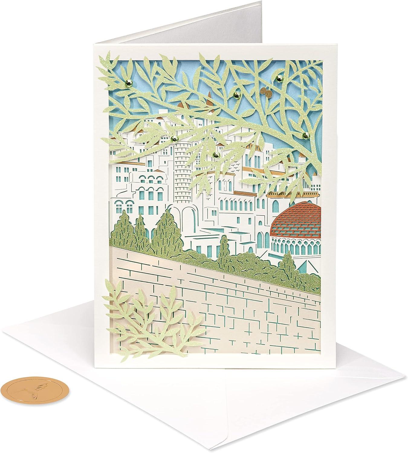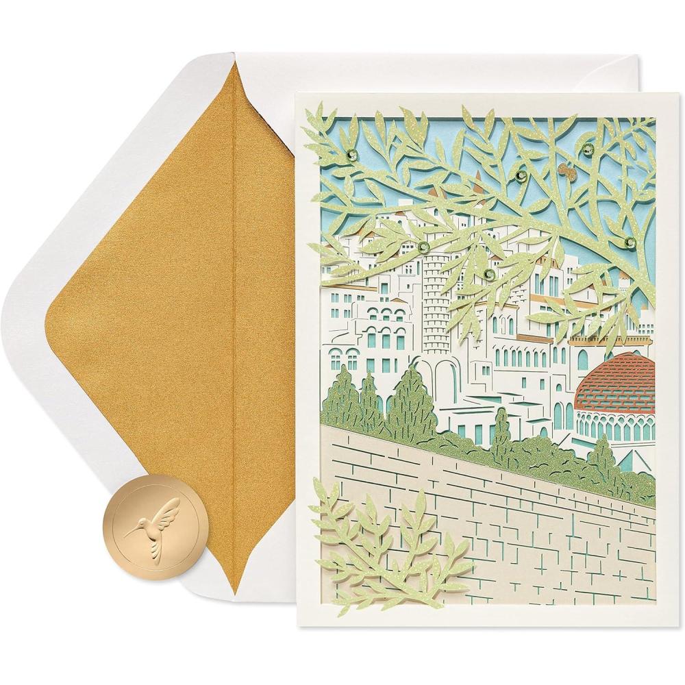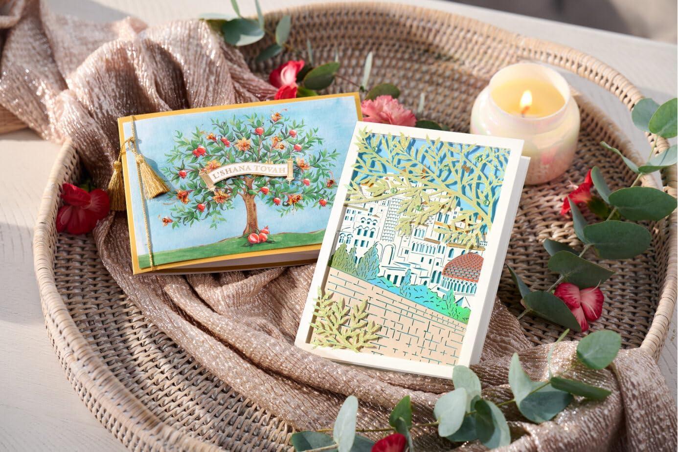 This Rosh Hashanah card by Papyrus features a beautiful pomegranate tree embellished with shimmering foil and glittering gems.