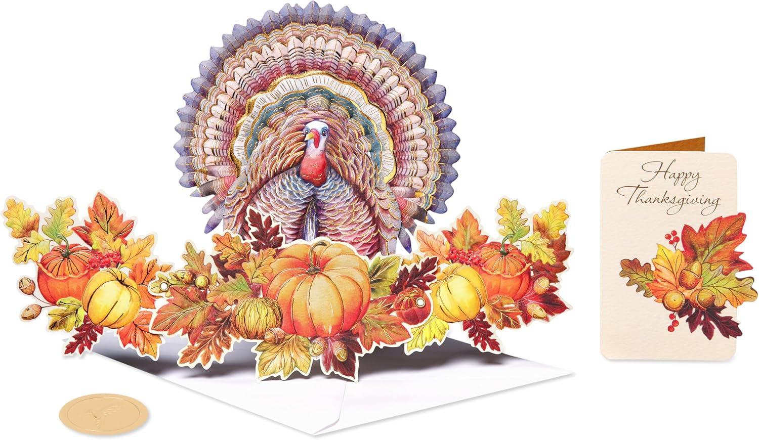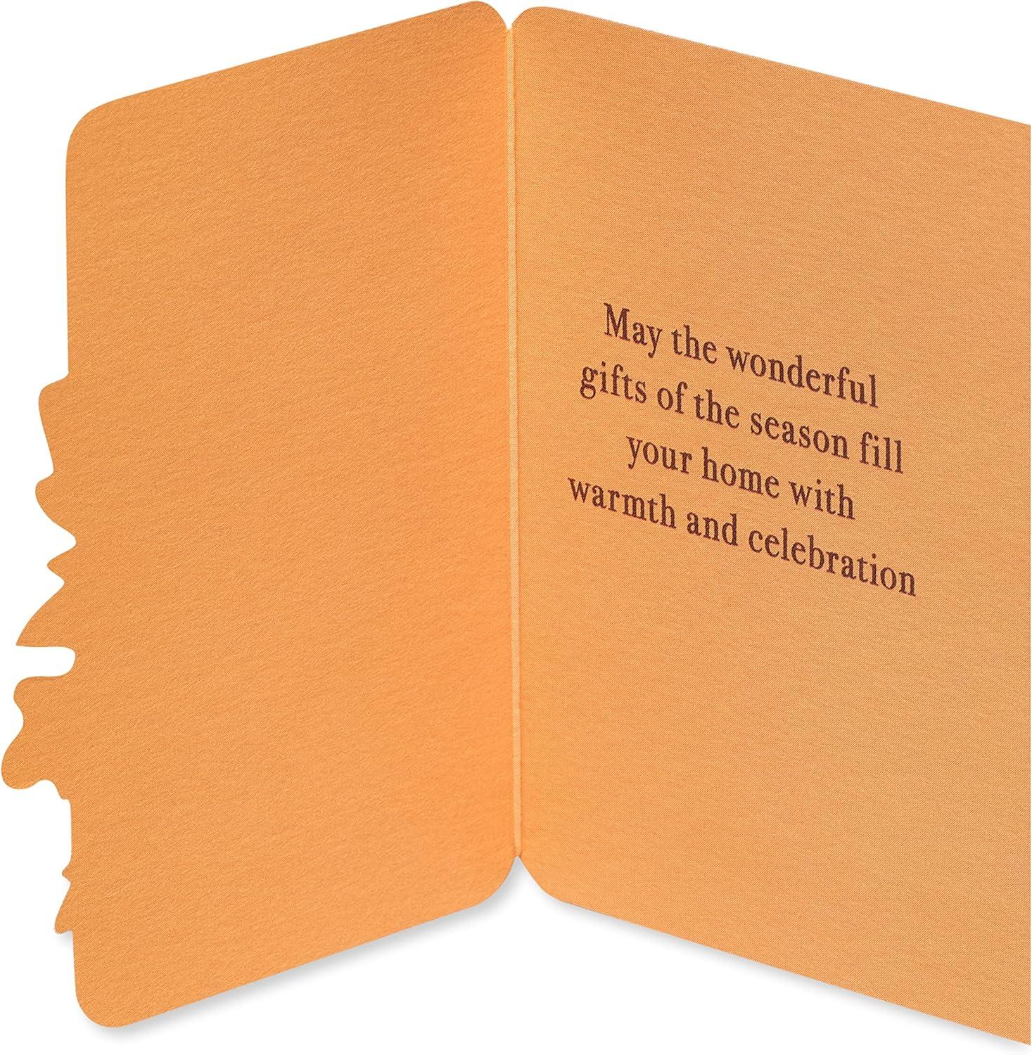 Let them know you’re thinking about them this Thanksgiving with this Premium Thanksgiving card from Papyrus. This exquisite laser-cut design is in the shape of a pumpkin and accented by a fall color palette. The craftmanship of the card is further enhanced with embossing and layered paper attachments of acorns and a maple leaf. With a simple and heartfelt message, they’ll certainly feel grateful for you this Thanksgiving. Premium envelope with unique Papyrus gold seal included. Extra postage required.